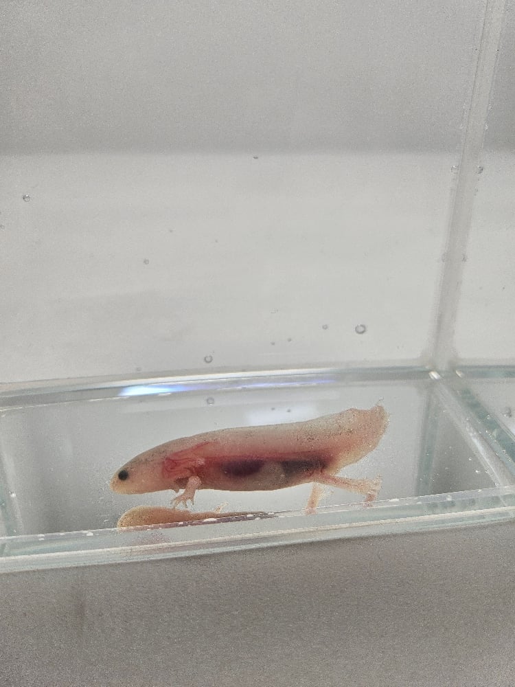 Cris P. Bacon is a juvenile Dirty Leucistic axolotl. While Cris has been a slow grower compared to its sibilings, as you can see from the lack of wanting to stay still for a photo - this wiggly critter has been slowly growing into a healthy axolotl.