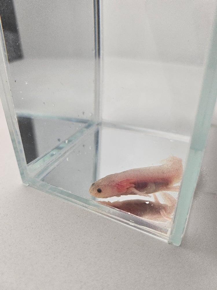 Cris P. Bacon has been eating 1-2 red wiggler worms daily, and would make a wonderfully lively companion. Please read the axolotl care guide to ensure comfort in Cris's new home.